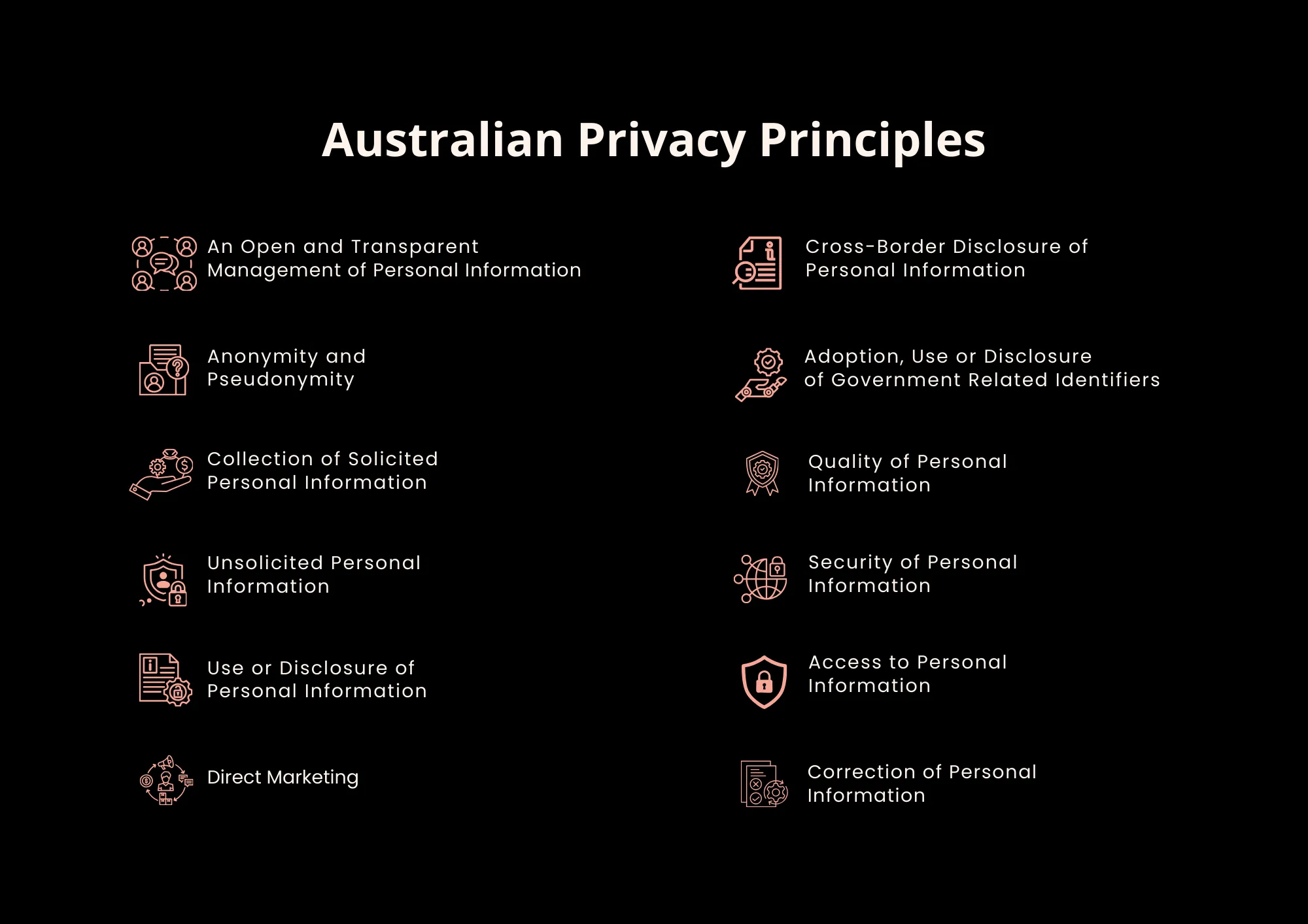 - Ensure information is accessible whenever needed and comprehensive and current. These are all requirements stipulated by Australia’s Privacy Act.